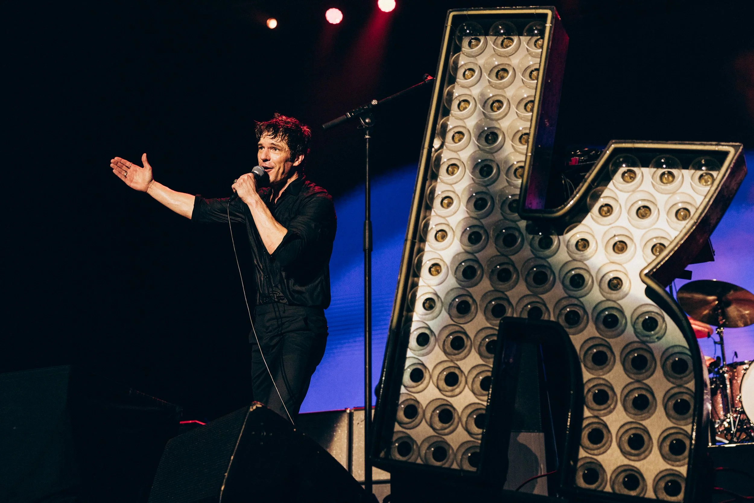 Brandon Flowers, impecable en presencia y energía, asumió su rol con naturalidad absoluta. No es solo un cantante: es un showman salido de otra época del pop, con una mezcla de elegancia, teatralidad y cercanía que domina el escenario sin esfuerzo aparente. En un momento temprano del concierto se dirigió al público en español: